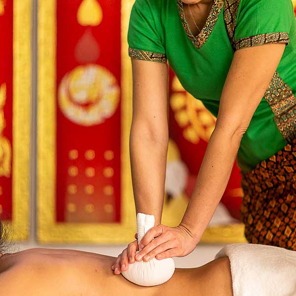Thaimassage är en behaglig Akupressurmassage som med långsamma djupa tryck och Yogans stretchrörelser släpper på blockerad energi och spänningar i kroppen. Trycket på musklerna töjer ut muskelFascian, stimulerar elasticiteten i bindvävnaden och ökar blodgenomströmningen, och återhämtningsförmågan förbättras i hela kroppen.